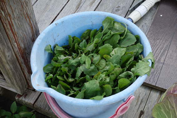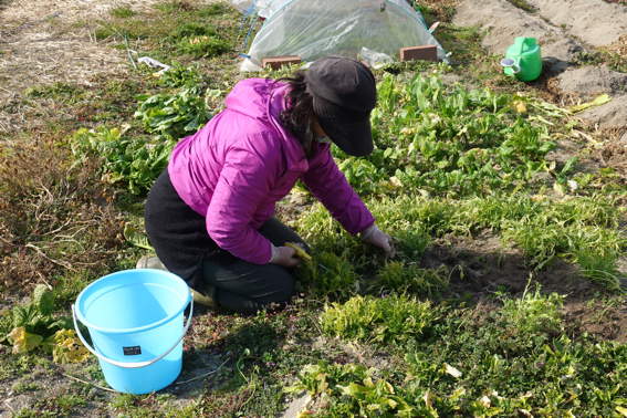 雑草取りをしながら水菜を収穫するゆり様