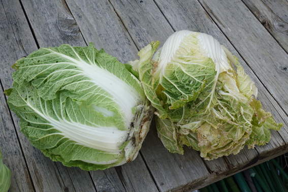 しっかりと葉の締まった白菜も収穫