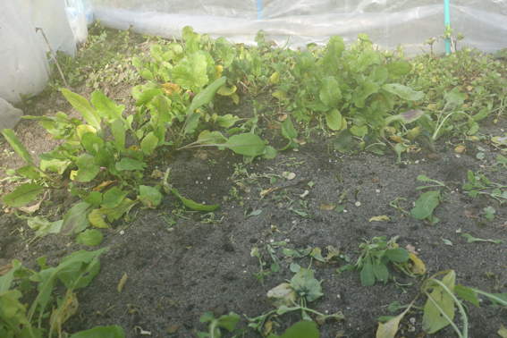 ビニールトンネルで守ったルッコラです