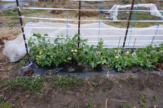 先週やり終えられなかったスナップエンドウの固定をやりました