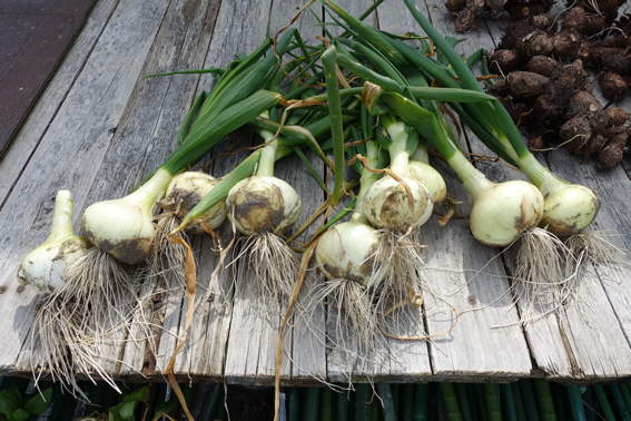 これは早生と極早生のタマネギです