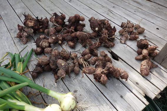 根深一本ネギもほぼ終わりですね 里芋は近いうちに