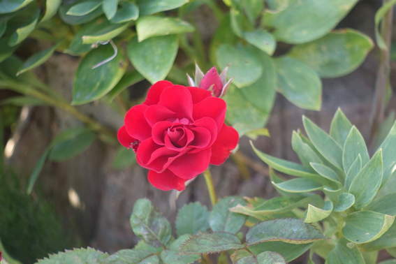 ちょっと赤色の花がほしい花壇です