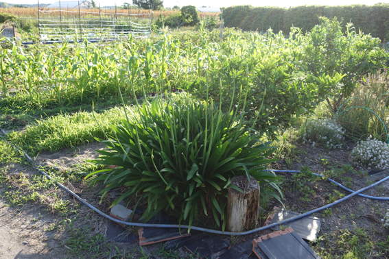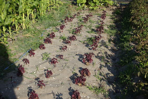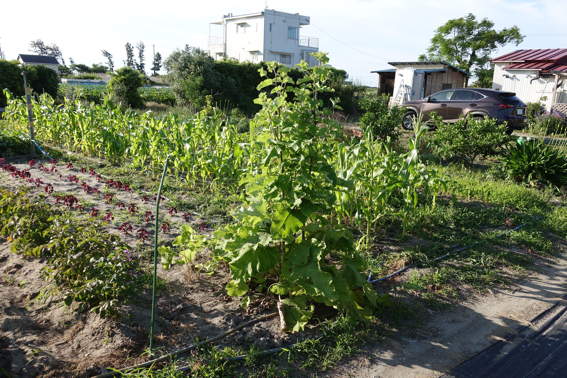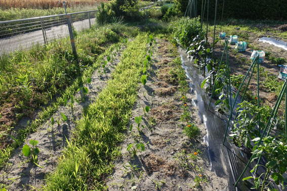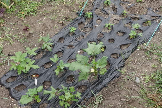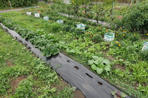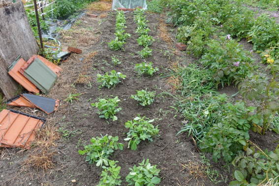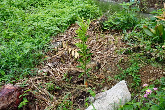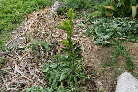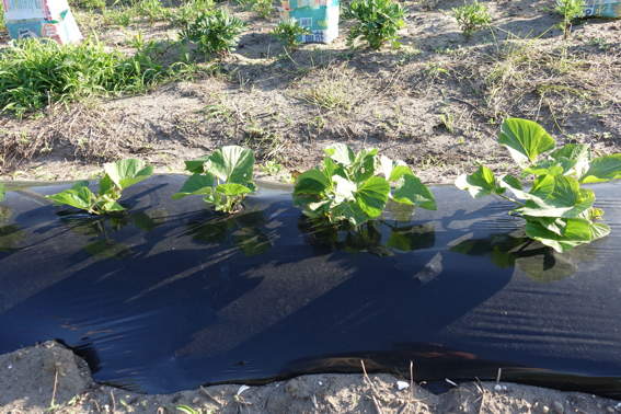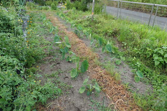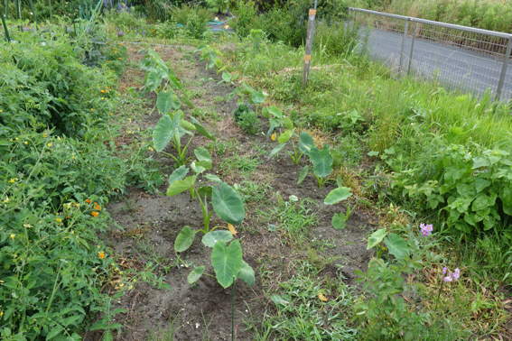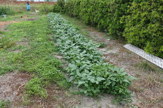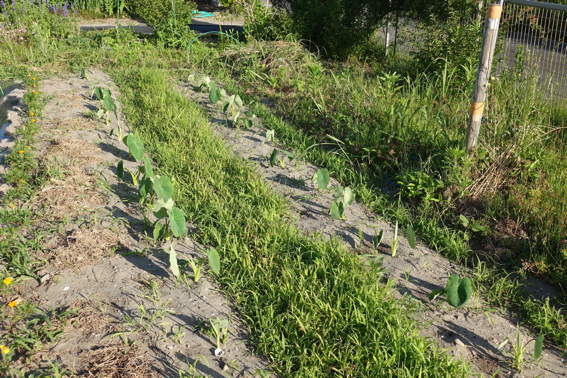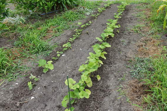 南側の畑には2週間前に植えたウナギ芋?が育っています