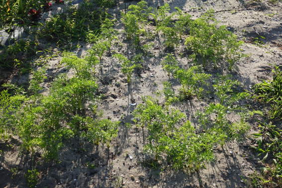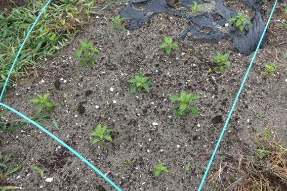 ゴボウの葉っぱの影で雑草が負ける構想だったのですが