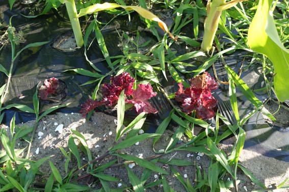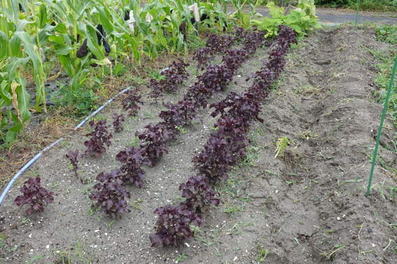 ひっそりとガーデンレタスが育っています