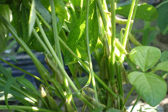 枝豆に莢が付いてました 早くネットを被せないと