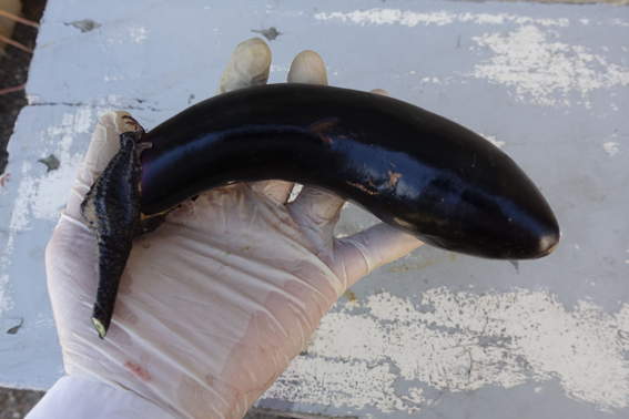 初物のナス 立派なサイズです