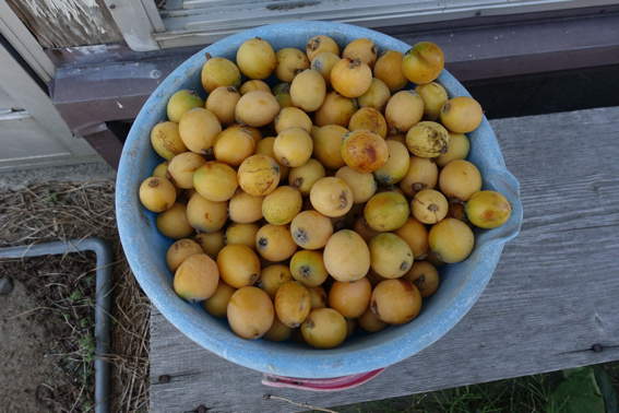 バケツ一杯分のビワが収穫できました