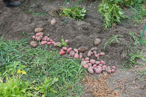 ジャガイモは不作ですが一畝片付けてもらいました