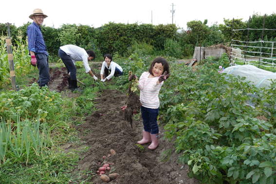 ジャガイモを掘ってピース