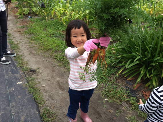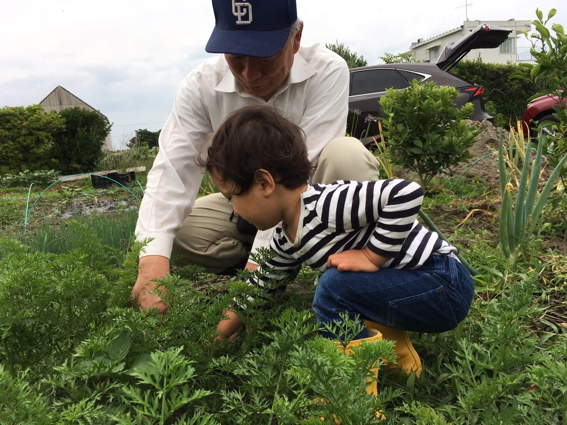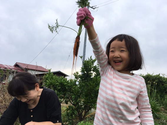 早速 ニンジンを採りたいという孫の希望で収穫作業を始めました