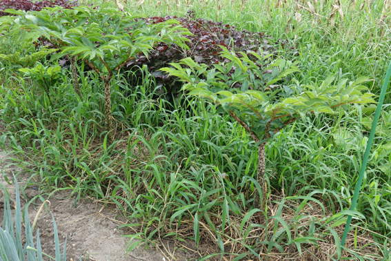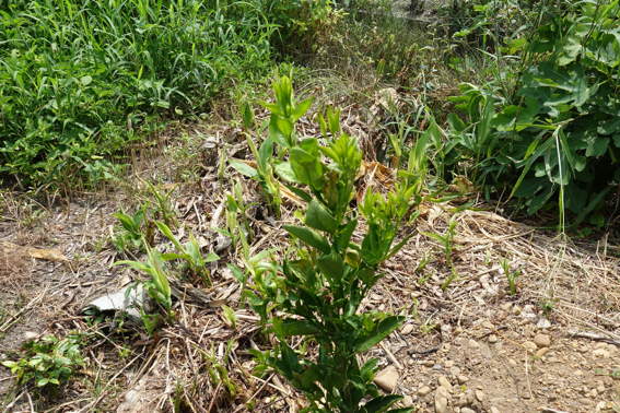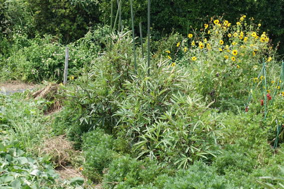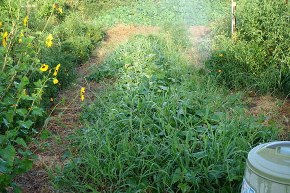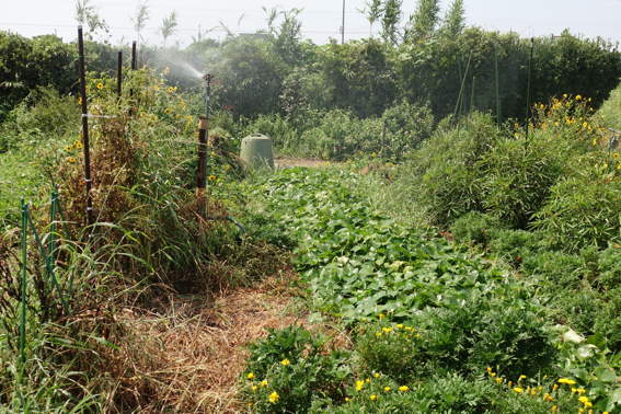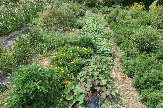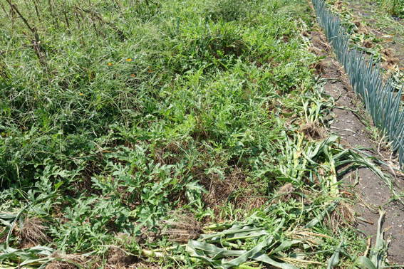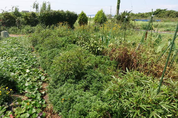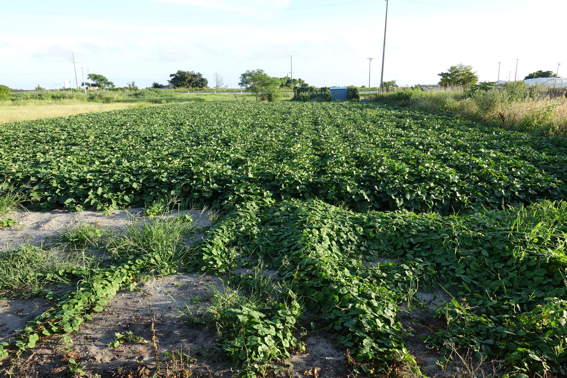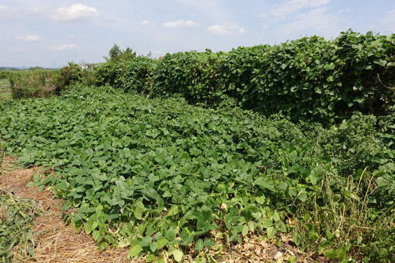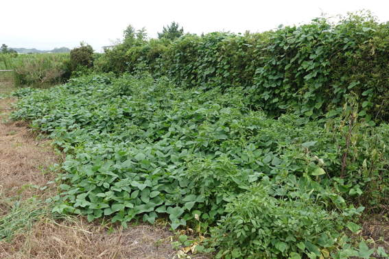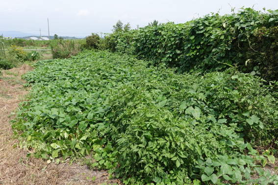 隣のウナギ芋の畑は手前の雑草と区別が付かないですね