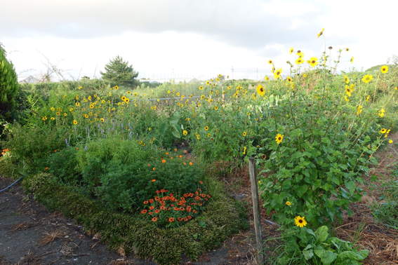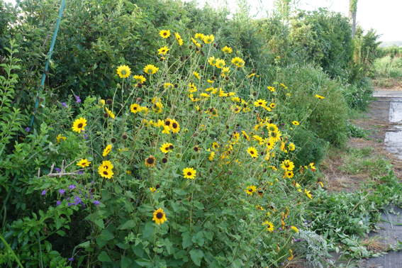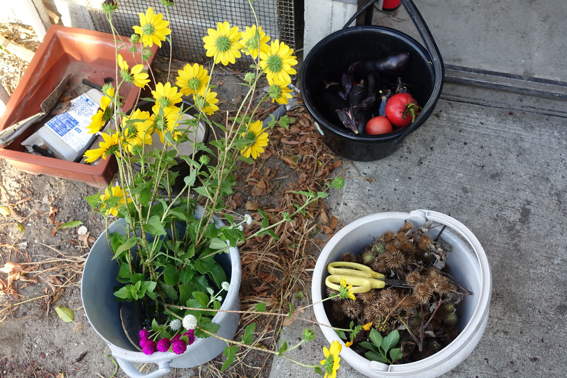 ナスやトマト 姫ヒマワリとゴボウの花の枯れたの(種を採取)