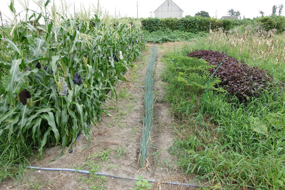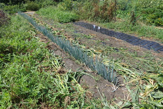 収穫に追われ 私は水遣りや 根深一本ネギのそばの雑草取り
