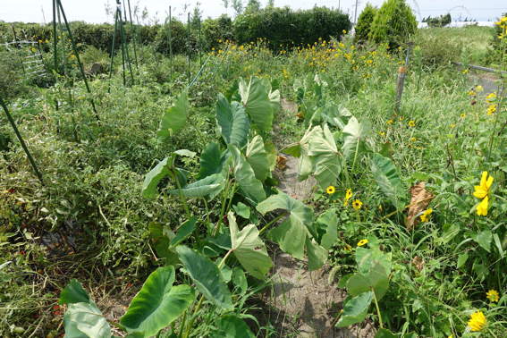 里芋は田中さんが水をやってくれているので去年よりはマシです