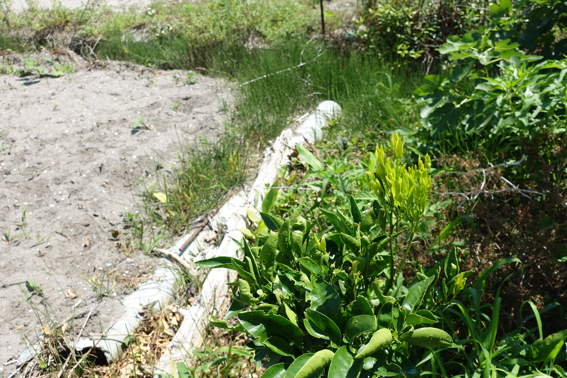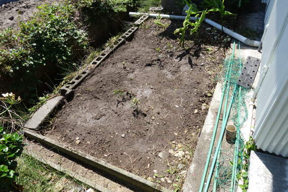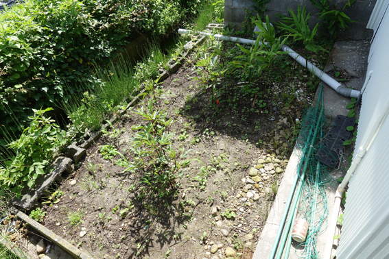 ここにローゼルハイビスカスの余り苗を植えました