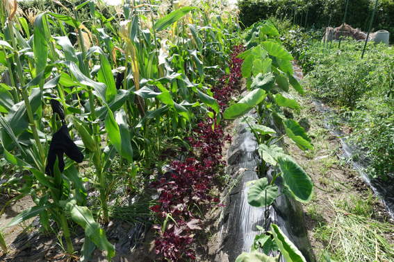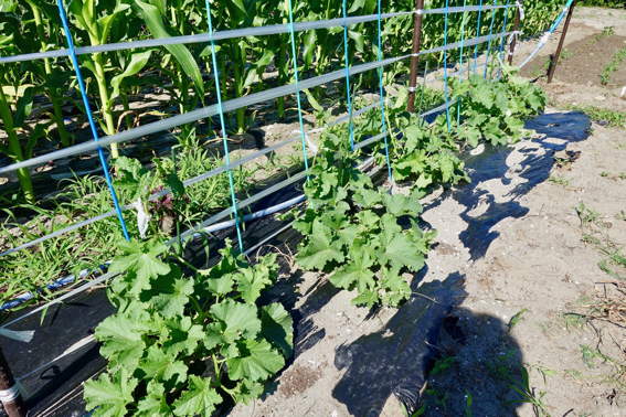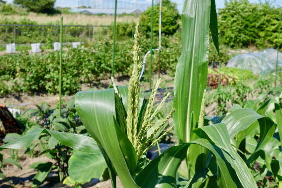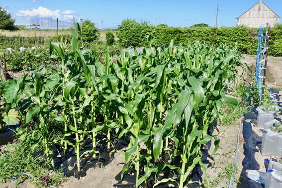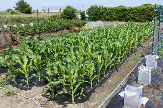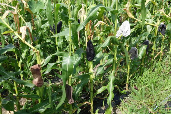 今日も日帰りでトウモロコシに鳥除けの靴下を被せに来ました
