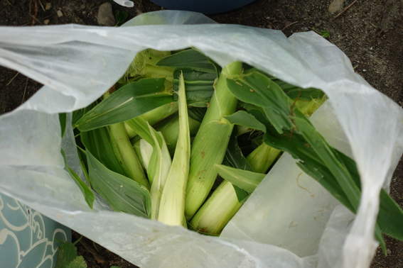 トウモロコシを一本一本チェックして虫が居たら捕殺しました