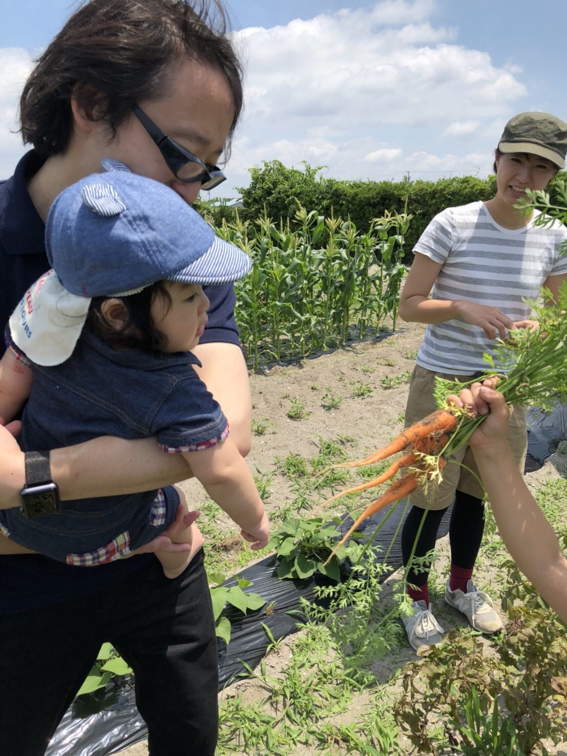 長男の息子の葵くんは初の農場訪問でした 次回は歩き回るかな?