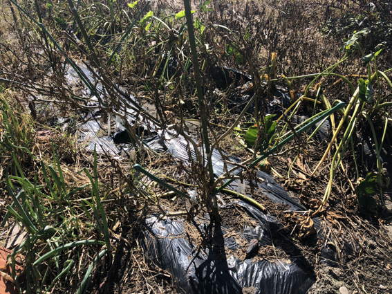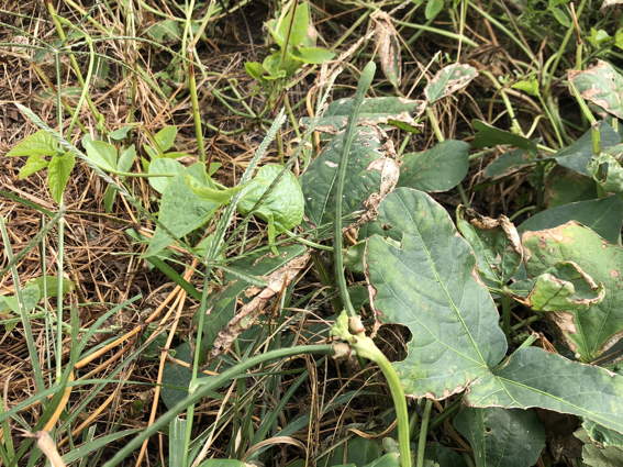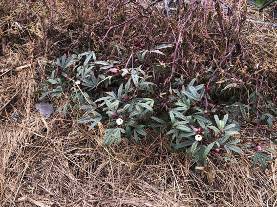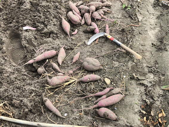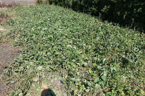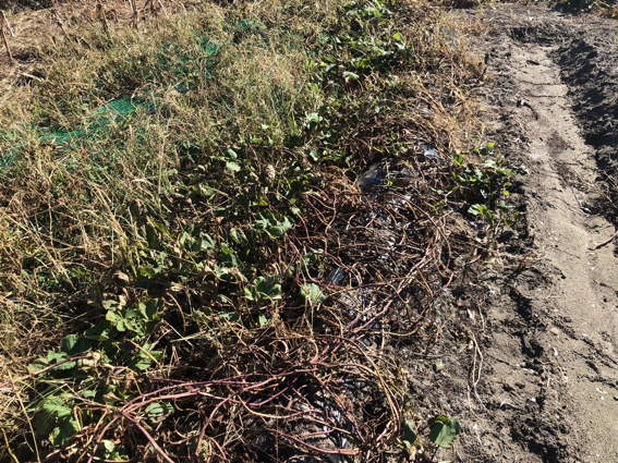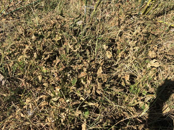 いろいろな場所のサツマイモの葉っぱが枯れてます
