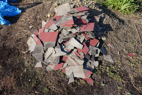 ガーーーーン 南側の屋根のタイルが吹き飛ばされていました
