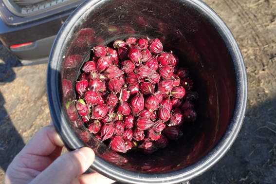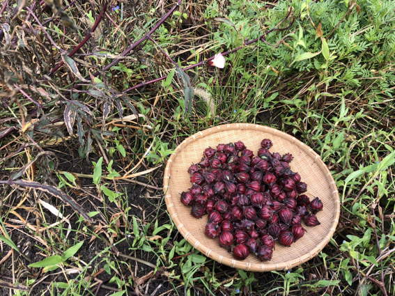 ローゼルには殆ど葉っぱが残っていません