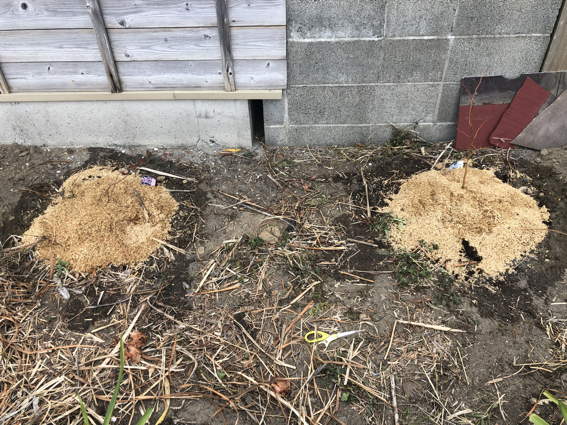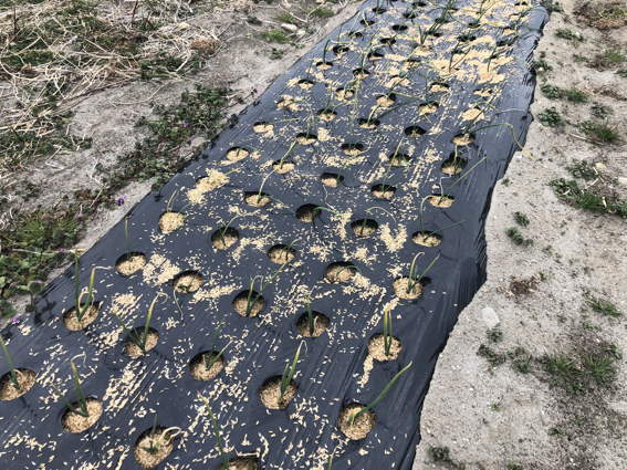 ちょっとだけ元気になったタマネギにモミを撒きました