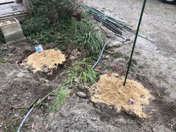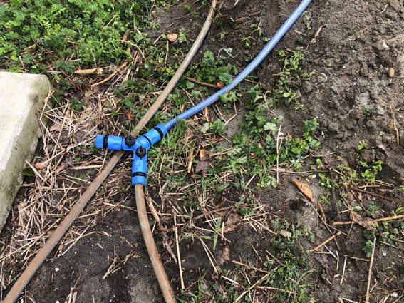 梅の木を植えたかったのと 水やりのホースを設置するためです