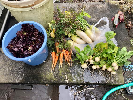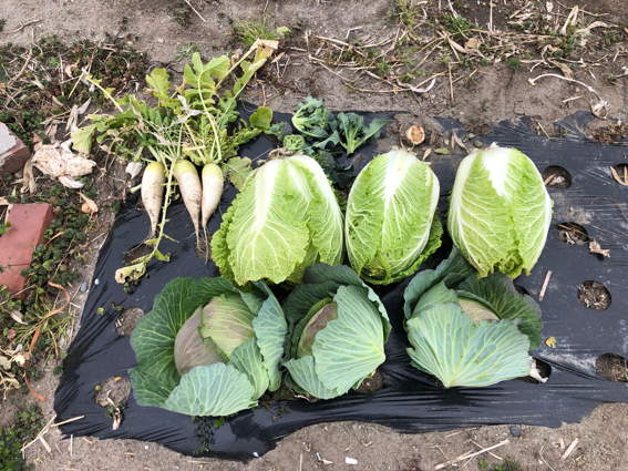 キレイなキャベツと白菜です 大根は成長不良ですね