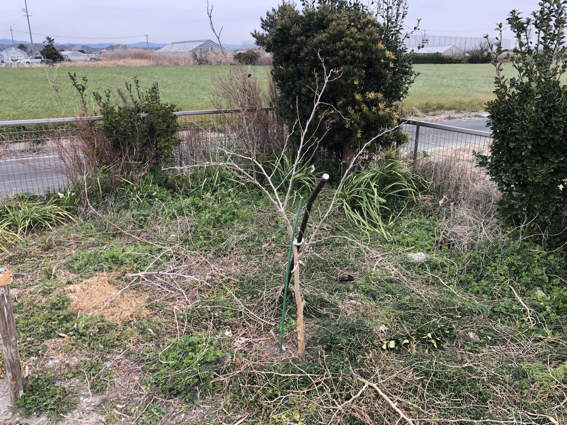 南側の猫の額畑に2本植えました ちょっと大きめの苗木で