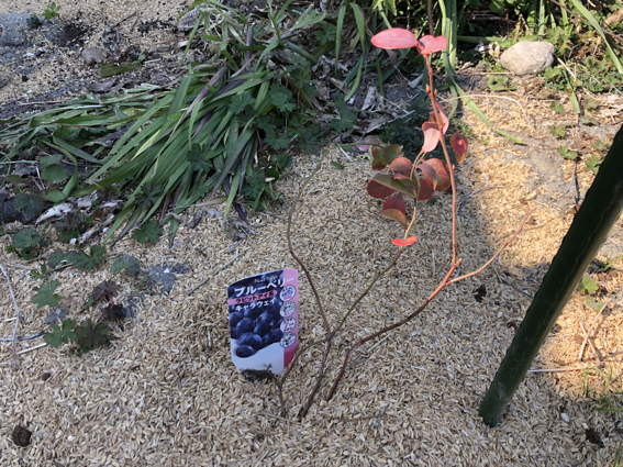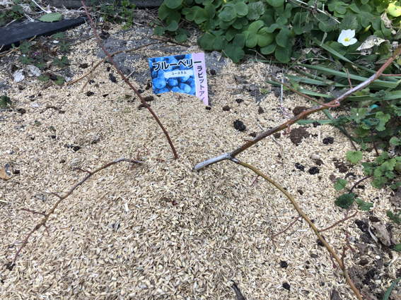 倉庫の東側の風の当たらないところにもブルーベリーを植えました