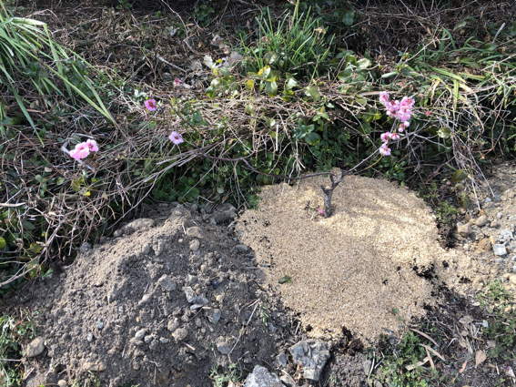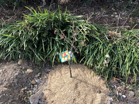 ここにピンクのうめを植えました 以前ゆり様が盆栽を貰ったのですが