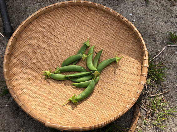 少しだけスナップエンドウを収穫しました 肥料もあげましたよ