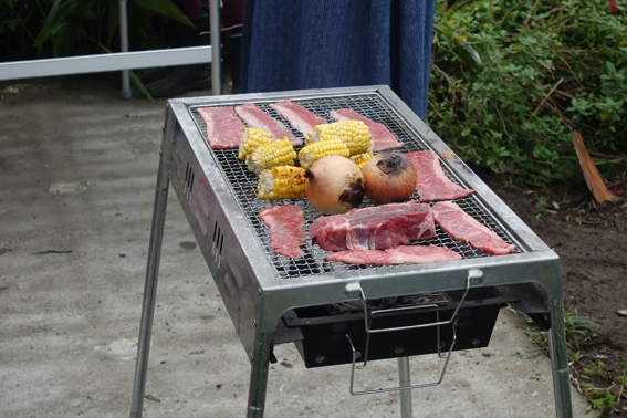 美味しいお肉とトウモロコシや丸ごと玉ねぎなど