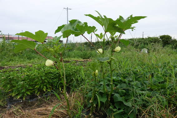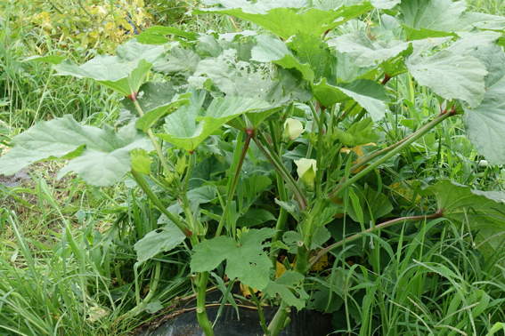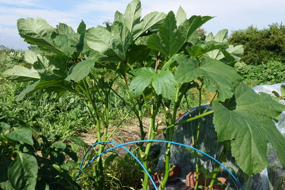 葉っぱは立派ですが縦方向に成長が遅いオクラです