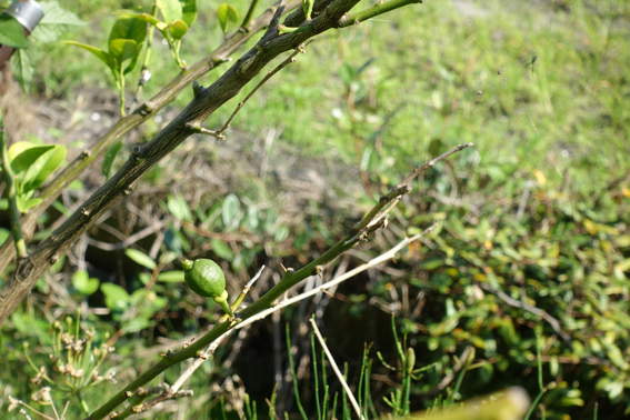 手前のレモンは葉っぱが殆ど無いので枯れるかもしれません