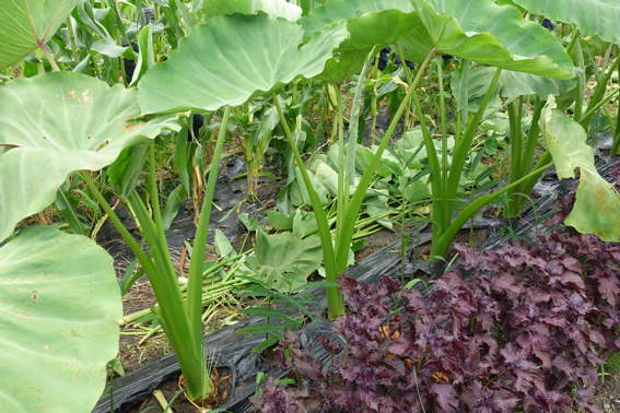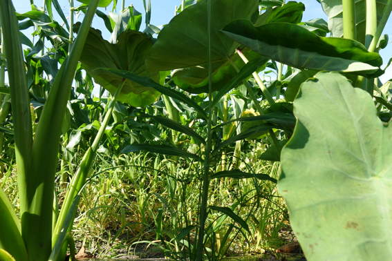 里芋の間に植えた生姜が大きくなってます