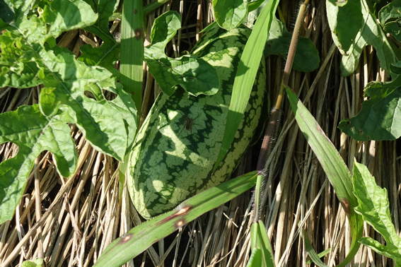 ツルが枯れてしまった出来損ないのスイカを家に持って帰ります