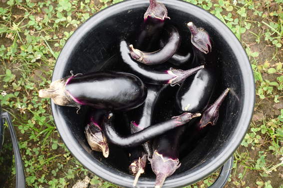ナスはご苦労様です たくさん収穫できましたよ