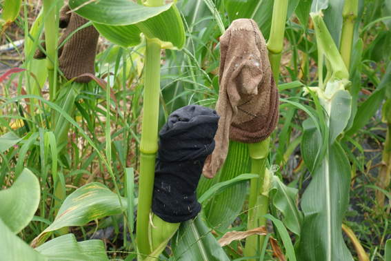 近日中にトウモロコシに靴下がけをします カラスやハクビシン対策です