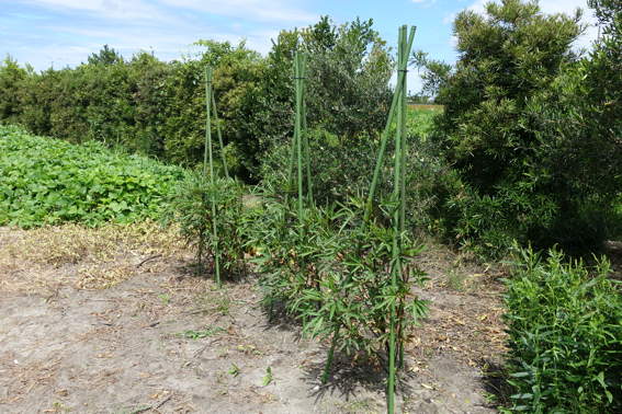今年は3本の支柱で倒れないようにします
