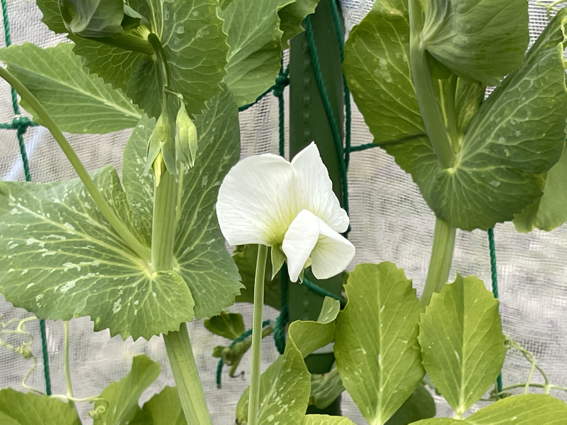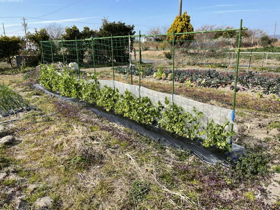 スナップエンドウが大きくなりました 防風ネットは除去しました