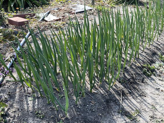 今日はニンニクとタマネギに肥料をやろうと農場にやって来ました