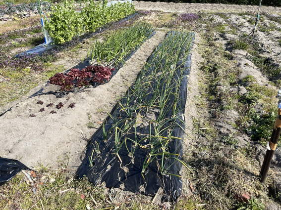 九条ネギとニンニク畑です