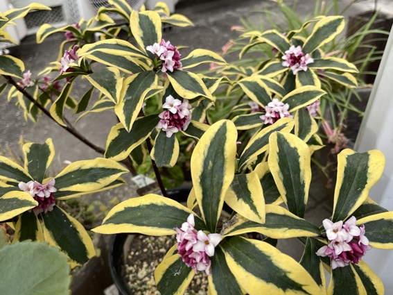 玄関の横の沈丁花が咲いています