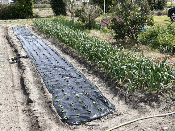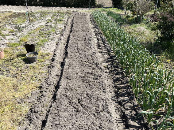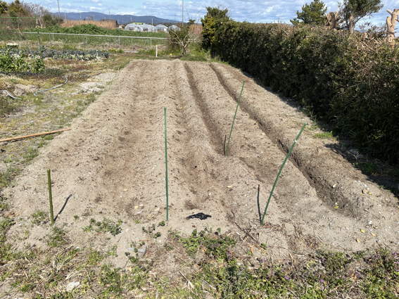 今日は左側に大根とゴボウ 右側にニンジンと小かぶのタネを蒔きました