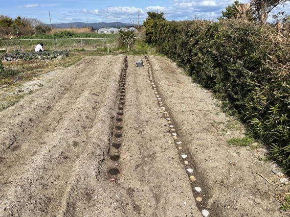 これで出来上がり 後は2度追肥して 2度土寄せすれば