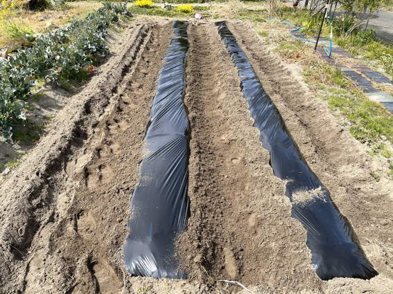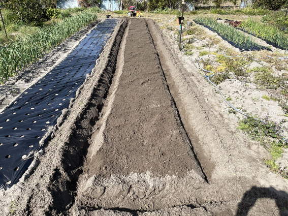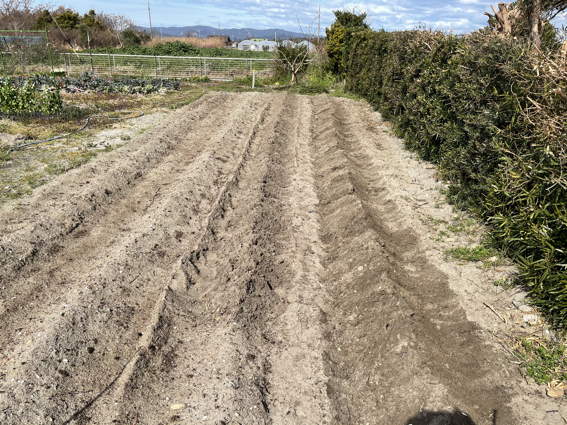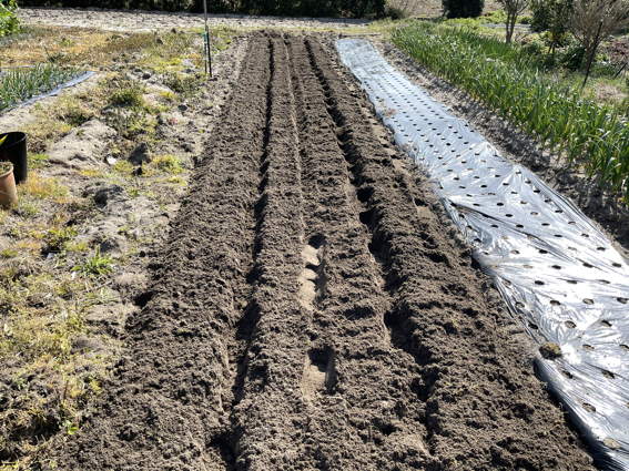 その後に両脇を畝立て機で掘って板で両端を叩いて