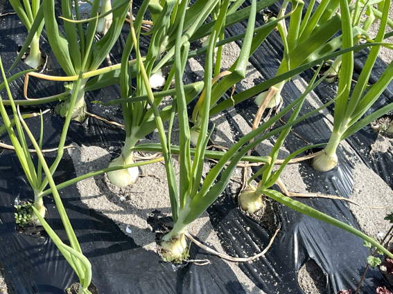 早生のタマネギですが どこまで大きな玉になるのかな?